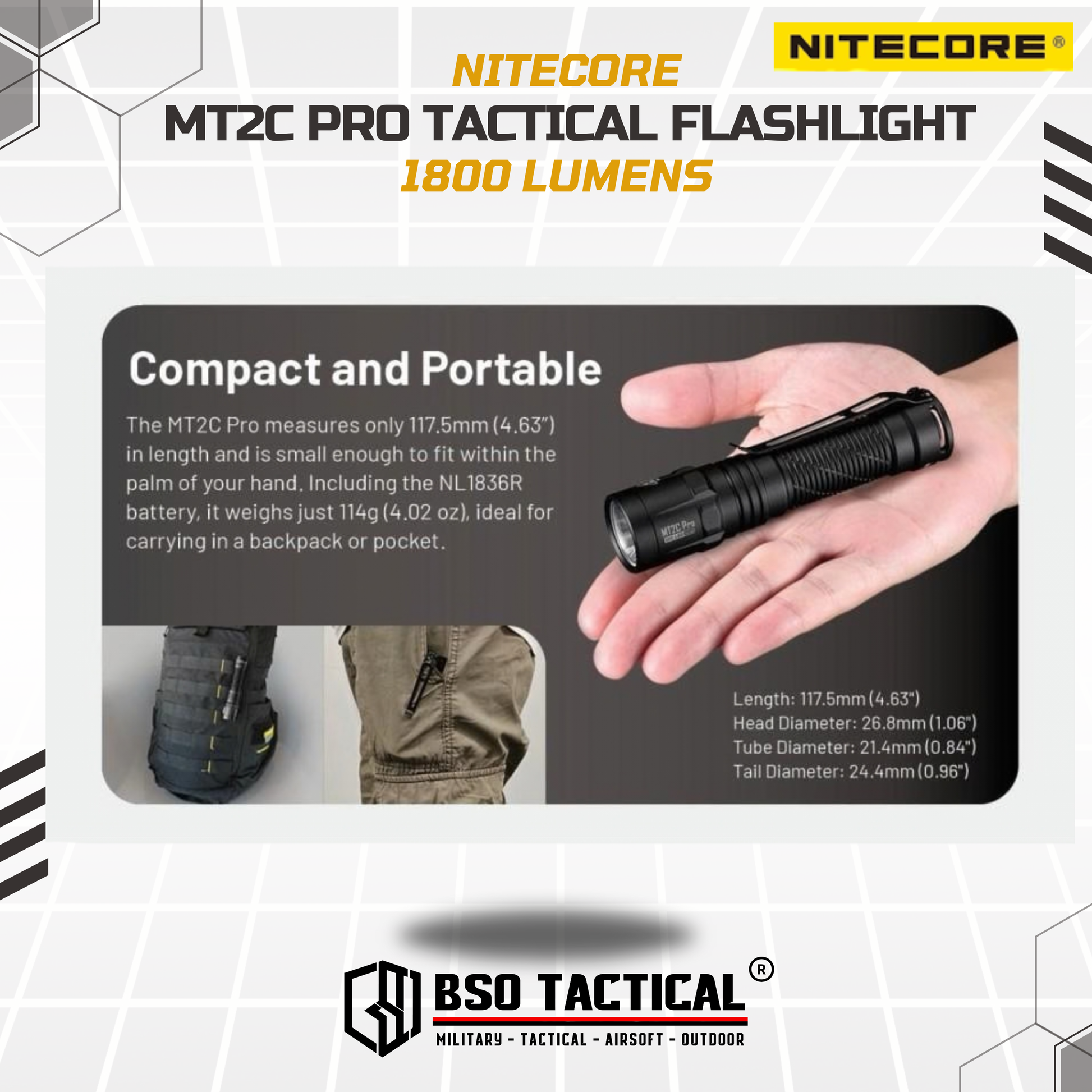 NITECORE MT2C PRO Senter LED Tactical Flashlight UHi 20 IP68 1800 Lumens Outdoor Flashlight Camping - ORIGINAL