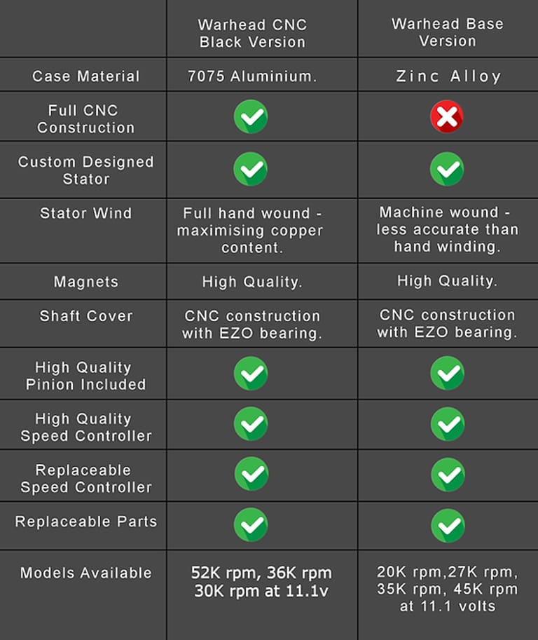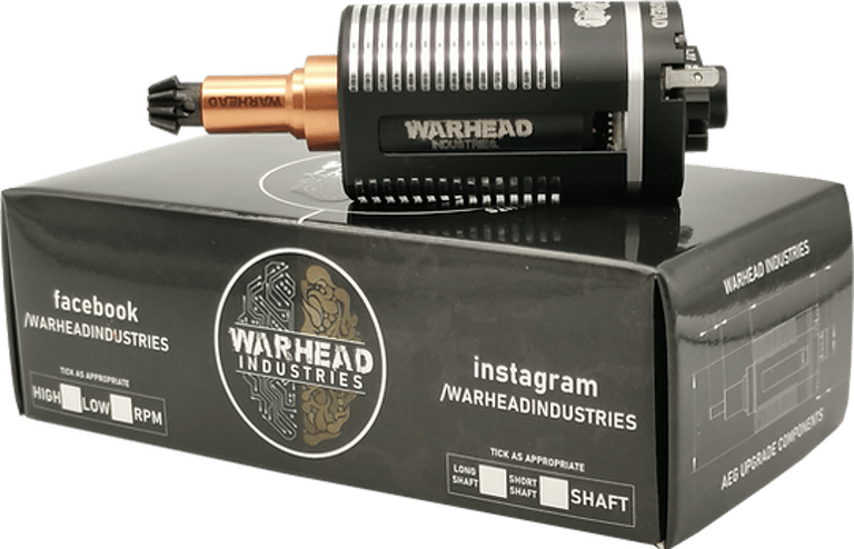 Warhead Black AEG Motor: Dirancang dengan casing aluminium 7075 berkualitas tinggi, motor ini memiliki desain in-runner khusus yang memberikan tenaga dan torsi maksimal.